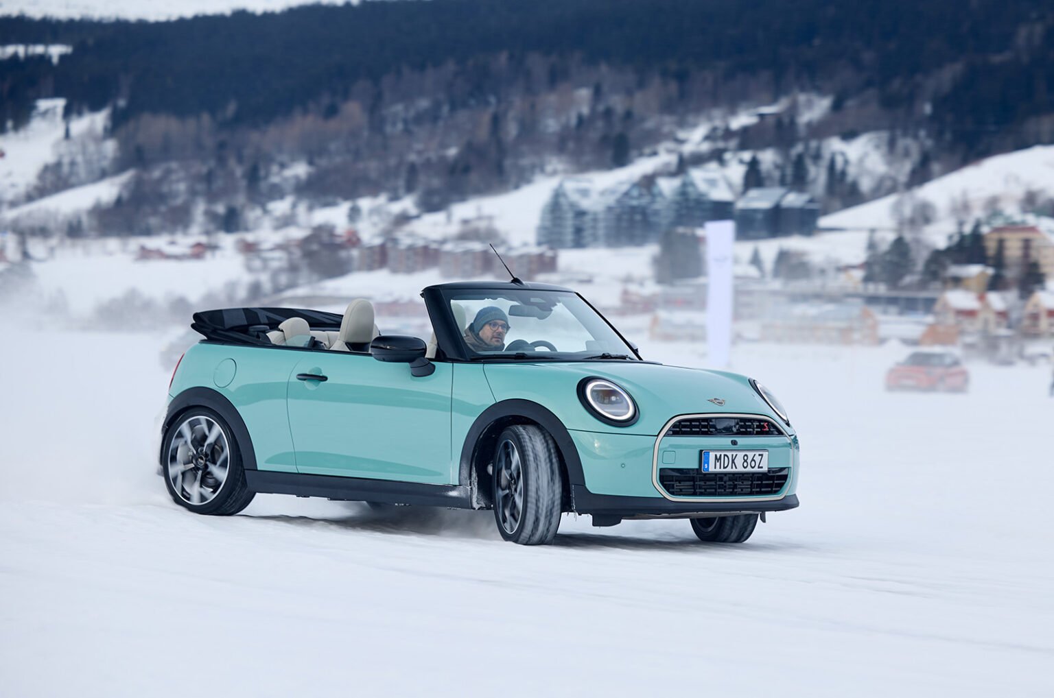 The drive looks fairly innocuous on a map -you turn right out of the airport, subtly cross a border then sit on the E14 until the glowing bars of Are heave into view. The road gently wends its way through scenery that appears frozen solid, the Cooper S taking it all in its stride on those foolproof-feeling studs – until WOAH!, an urgent, cold-blooded stamp of the brake pedal and a swing left of the Mini’s steering wheel to avoid an errant moose that’s chosen now, of all moments, to wander blindly into the road.